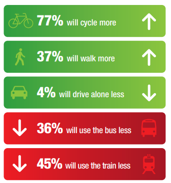 Commuters were asked about their preferred transport choice before the pandemic and once the Covid-19 restrictions were lifted. First choices for commuting changed as follows: